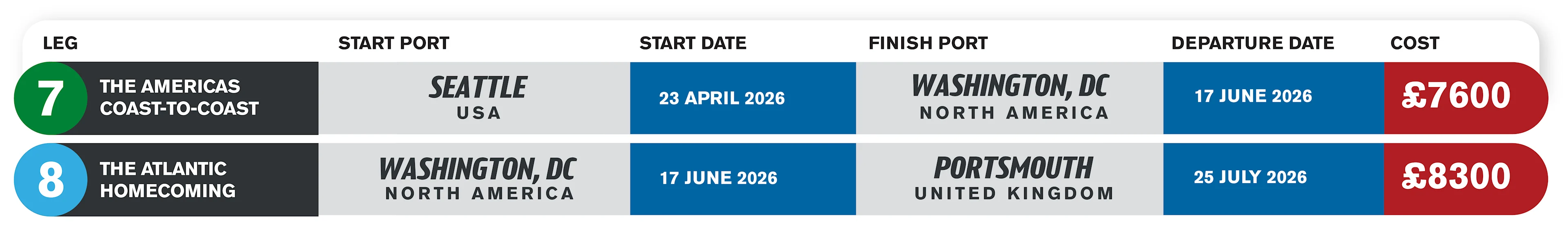 Check out our latest Race Schedule - we have limited availability on Legs 7 - 8 of the Clipper 2025-26 Race.